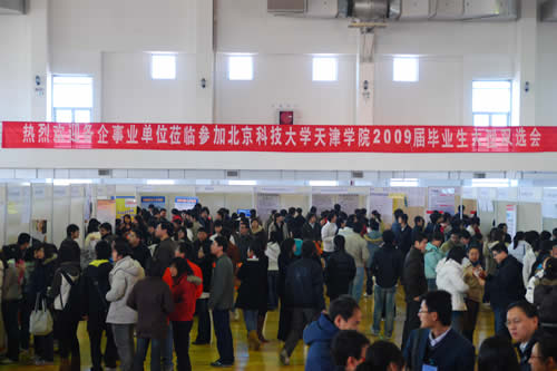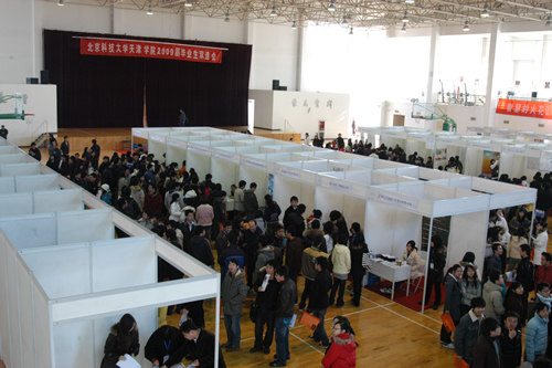 在体育馆成功举办第二场2009届毕业生双选会,来自京津地区的近六十家用人单位参加了双选会。更多企业走进校园,为2009届毕业生提供了更多的就业机会。