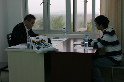 首届毕业生进行了面试。面试在全英文的环境下进行,整个过程主要有三个环节——学生自我介绍、学生对工作岗位的认识以及就一些关于工作中的具体细节问题进行商讨。面试结束后,霍曼门业总经理Mr.Weller对老王论坛