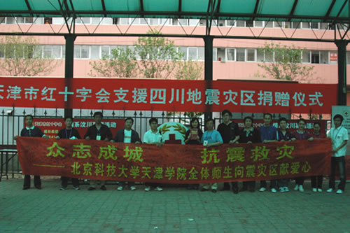 教师、学生代表一行5人,携带全院师生募捐的20万余元赈灾款赶赴天津市红十字会,将天津学院师生对灾区人民的关心送交给了红十字会,并委托红十字会把天津学院最真挚的祝福转达给灾区人民。