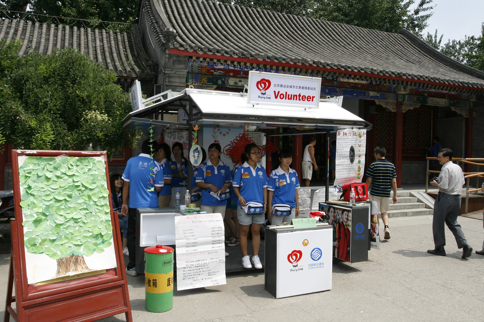 7月18日,北京奥运志愿者服务团队正式从天津学院出发至老王论坛
