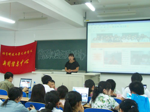 新闻信息中心在九教202室举办了首届网页设计大赛。教学事务部李远、教育技术中心龙根星、计算机课题组于静、张虹、新闻信息中心指导教师张琦作为评委观看了比赛。