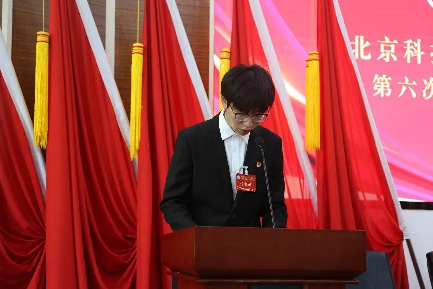 校学生会执行主席许廷垚代表第五届学生会作题为《久久为功,善作善成,奋力书写全心全意为同学服务的青春篇章》的工作报告。他首先从五个方面总结回顾过去一年学生会的各项工作,一是聚焦思想引领,强化学生思想政治素质;二是服务学风建设,促进学院学风新发展;三是深化实践育人,发扬志愿服务精神;四是强化品牌活动,繁荣校园文化建设;五是筑牢服务宗旨,维护学生正当权益。最后以三个方面对学生会未来工作进行展望,一是政治性为灵魂,强化思想引领;二是以先进性为使命,加强组织建设;三是以群众性为基石,服务广大同学。