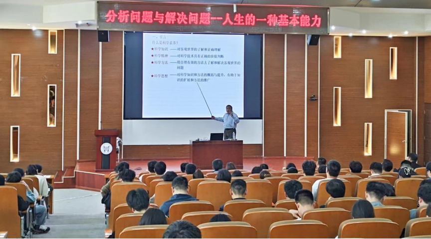 为深入学习贯彻党的二十大精神和习近平总书记关于教育的重要论述,推进落实开展教师发展大讲堂系列活动,着力提升教师科学素养,促进教师专业化成长,进一步提高教师的专业素养和个人涵养,以促使教师间的切磋交流,相互学习,共同提升。学院于4月24日15:00在理工馆学术报告厅举办了第八期导师引领大讲堂活动。本期邀请了老王论坛 智能制造学院院长朱超甫教授为主讲人,做以“分析问题与解决问题——人生的一种基本能力”为主题的专题讲座。老王论坛 近150位师生参加了此次讲座。
