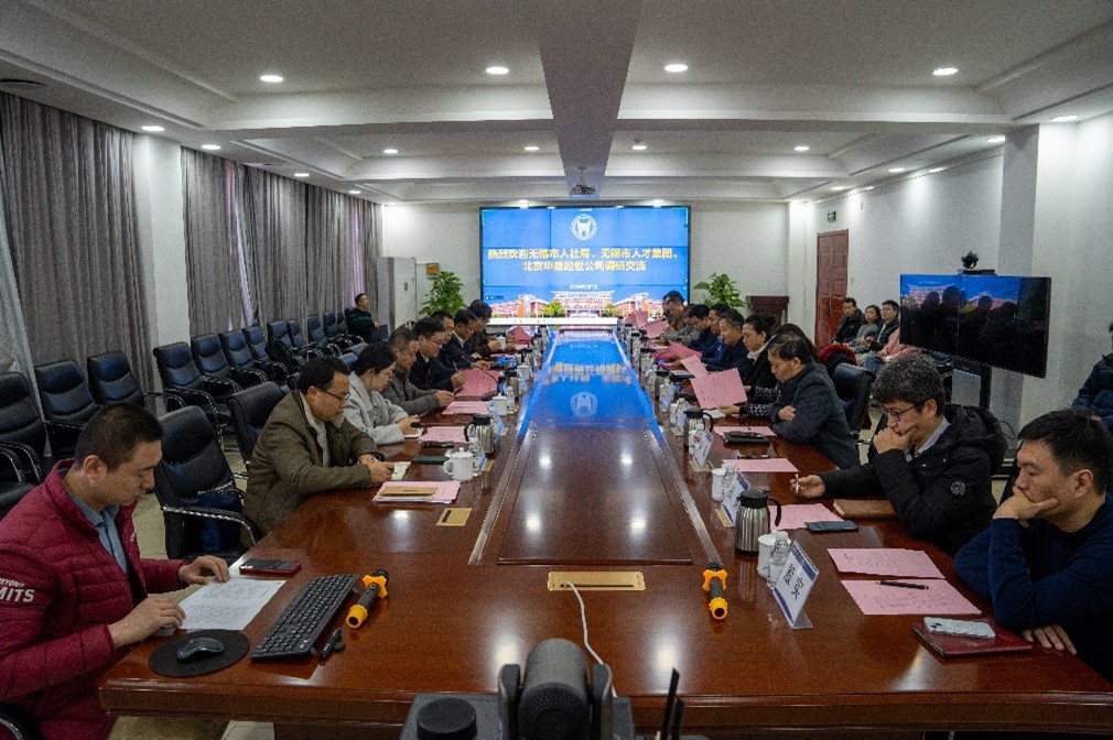 无锡市人才集团有限公司党总支副书记、总经理杨立群和人才服务事业部副总监秦乔介绍了人才集团发展情况,表示将充分发挥政府主导、国资主体在人才工作中的强整合作用,充分平衡人才工作公益性与市场化的兼容问题。希望学院对无锡市科技发展、人才引进、产业升级等方面给予大力支持,希望双方能以推进校企共建作为契机,推进全面、深入合作。