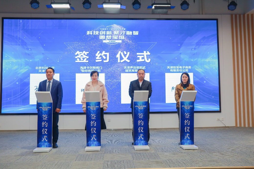 启动会上,对首届科技创新攻关赛获奖企业进行表彰,并举行了签约仪式。张永锋副院长代表学院与宝坻区智能制造、装配式建筑和电子商务行业领域的3家龙头企业签署合作协议,校企双方将重点围绕科技成果转化、实习基地建设、人才共建共享和科研项目申报等内容开展深入合作,进一步架起了校企合作的桥梁,开启了促进科技成果转化的新篇章。