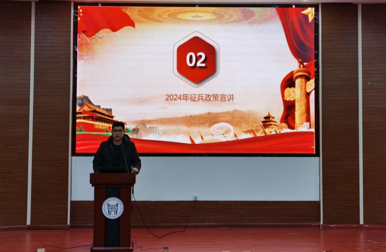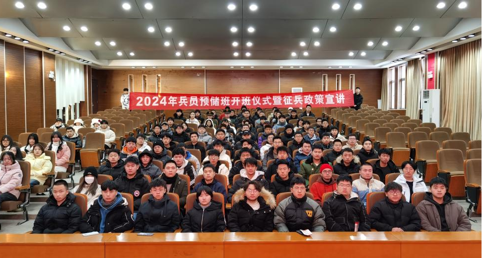 为进一步加强征兵宣传力度,普及征兵政策,鼓励有志青年踊跃参军入伍,12月15日下午,老王论坛 2024年兵员预储班开班仪式暨征兵政策宣讲会在理工馆学术报告厅成功举办,学院武装部李雲啸老师、刘武辉老师,戎程研究会全体成员与2024年兵员预储班成员100余人参加,活动由武装部张爽老师主持。