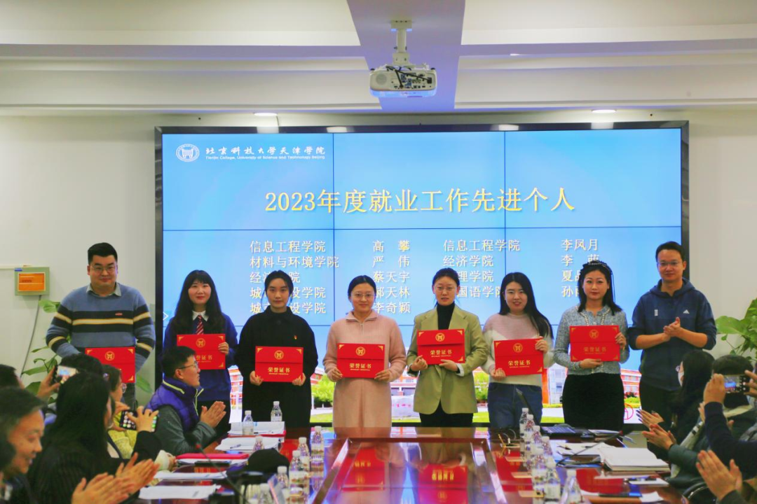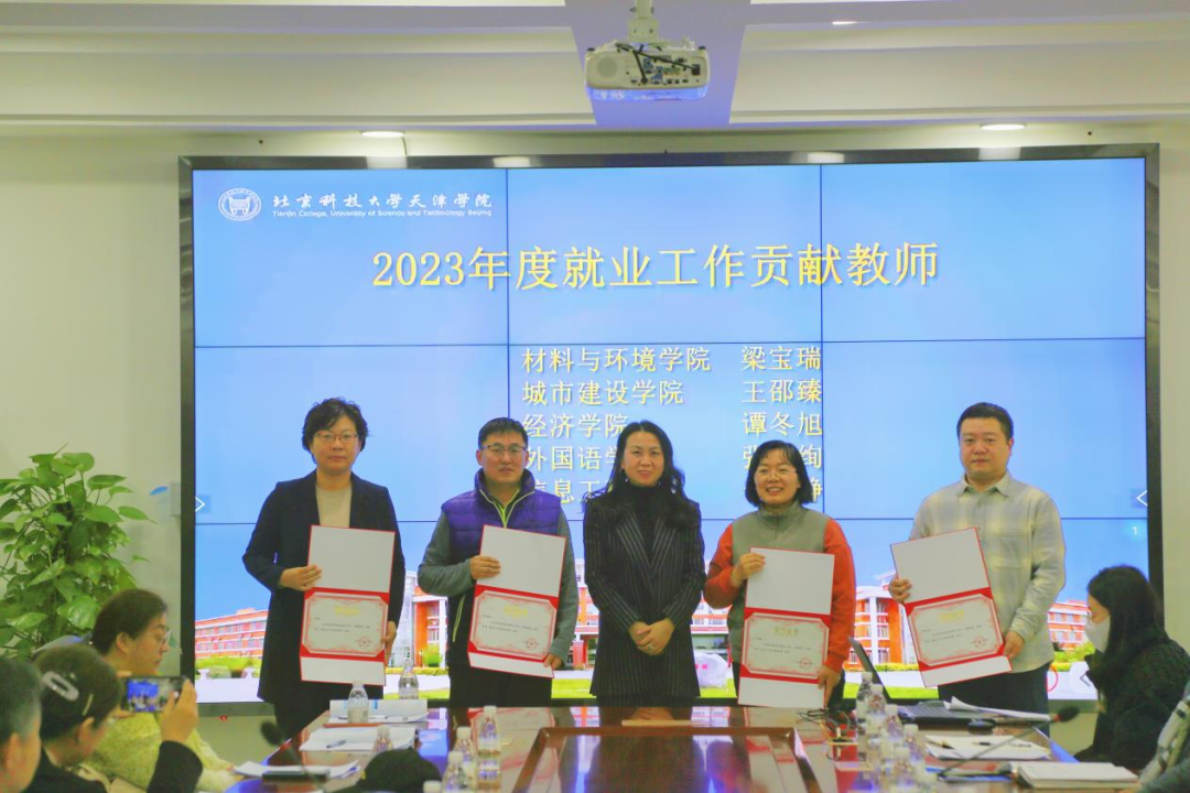 学院领导为就业工作先进集体、先进个人、贡献教师颁奖。