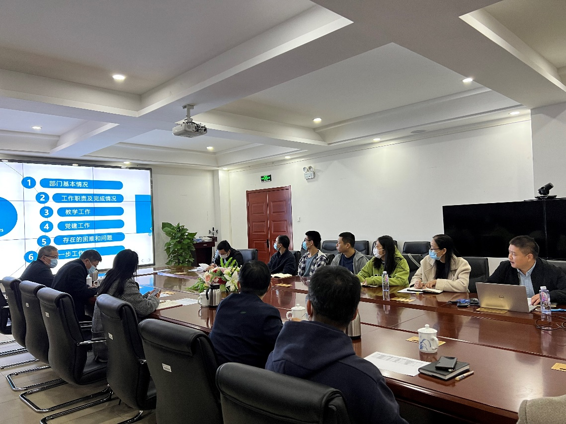 调研会上,实验室管理中心主任罗富臣对学院领导的到来表示热烈欢迎,并从部门的基本情况、工作职责及本年度任务、实验教学情况、党建工作、存在的困难和问题、下一步工作等六个方面进行了详细汇报,对今后的工作思路进行阐述。实验室管理中心副主任张利及其他老师作了补充发言。