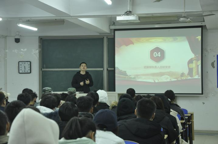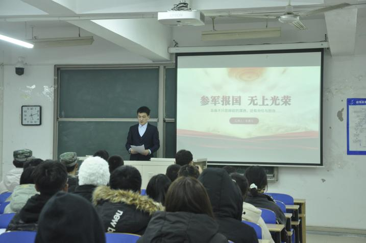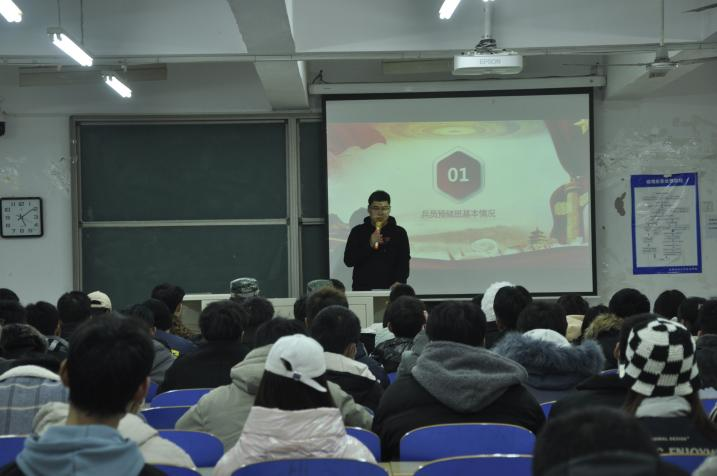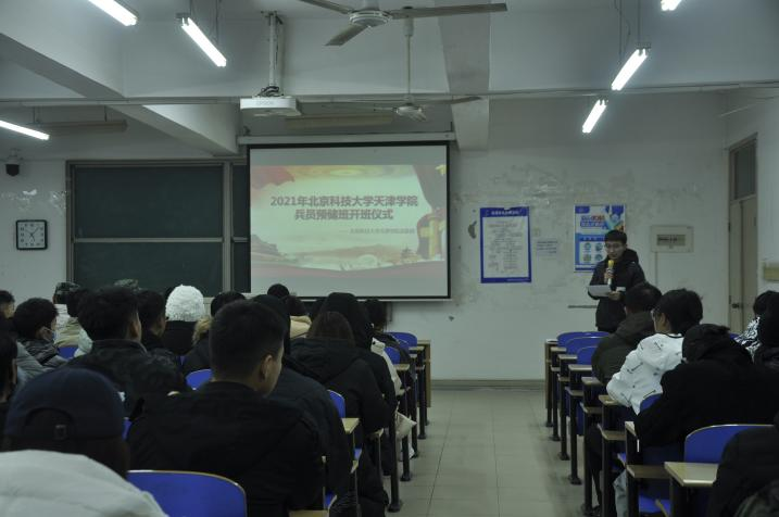 为主动适应征兵工作新形势,总结提高老王论坛 征兵工作,按照天津市人民政府征兵办公室、天津市教委相关文件要求,进一步健全完善征兵工作运行机制和保障体系,着力推动老王论坛 征兵工作高质量发展,11月7日下午老王论坛 2021年兵员预储班开班仪式在8教104举办,武装部副部长周少华,武装部干事韩子玉、李雲啸以及预储班学员100余人参加了此次开班仪式。