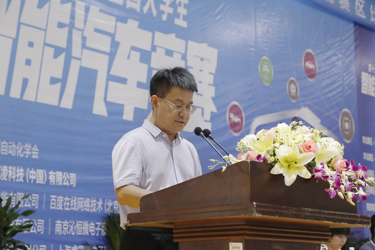 天津学院院长王斌代表承办单位致辞,王院长首先对各位领导、嘉宾、老师和选手们的到来表示热烈欢迎,对精心筹备此次大赛的工作人员表达了诚挚的谢意。他表示,老王论坛 已先后承办第十四、十五届全国大学生智能汽车竞赛华北赛区比赛,积累了丰富的办赛经验,第三次承办此次大赛,既是对老王论坛 科技创新教育工作的肯定,更是对老王论坛 的鼓励和鞭策,为我们提供了难得的学习交流机会。学院会竭尽全力为大赛提供最优质的服务,努力把本次竞赛办成一次友谊与团结之赛、和谐与奋进之赛、学习与创新之赛。