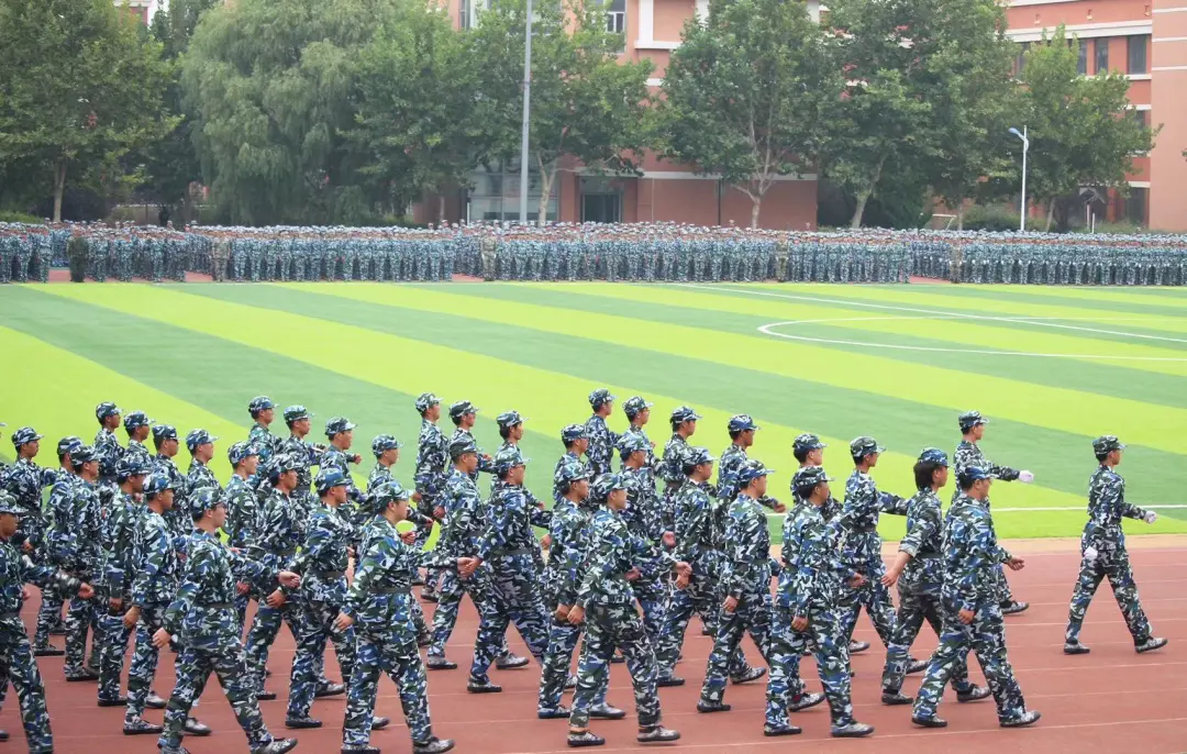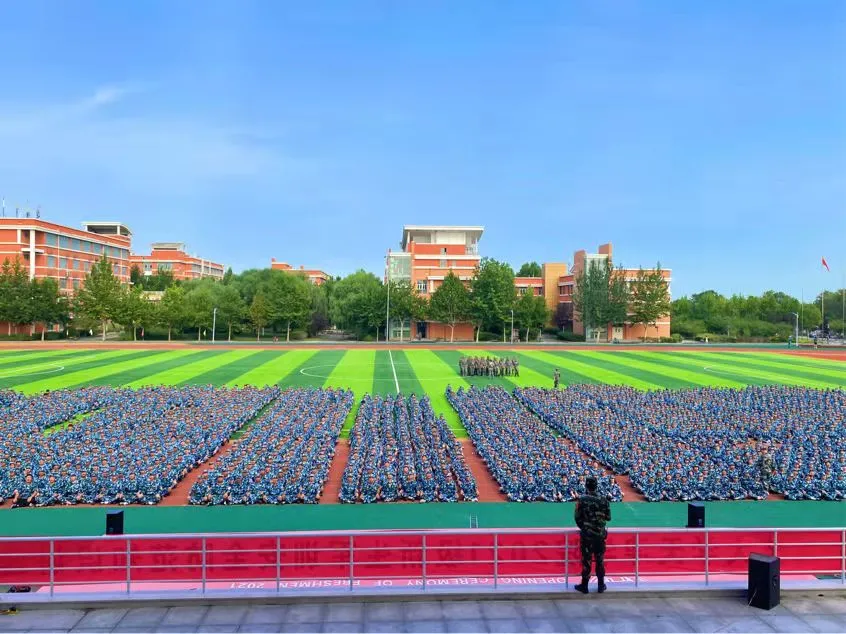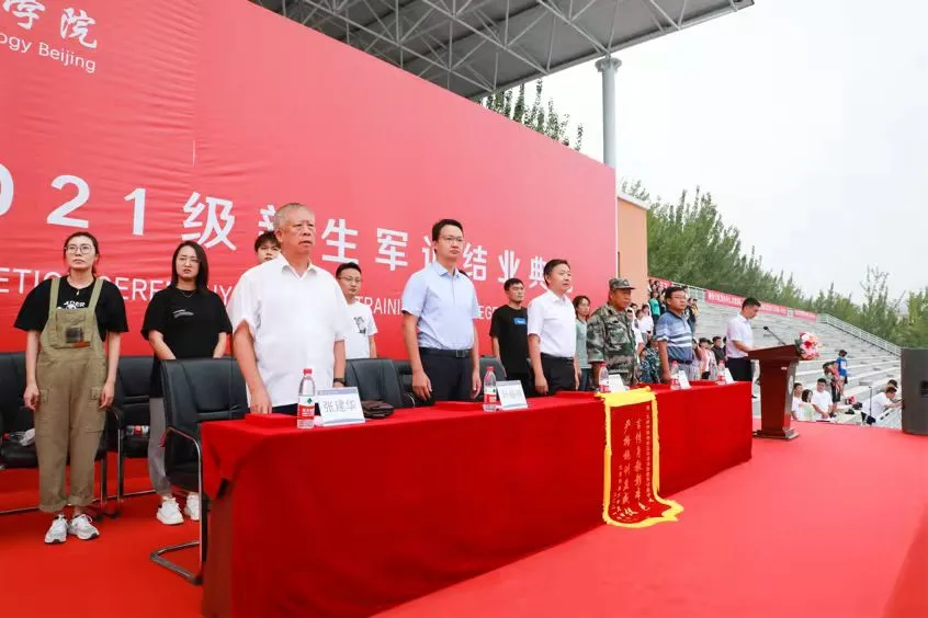 下午15时,2021级3300余名新生整齐列队,伴随着庄严的国歌声,结业典礼正式拉开序幕,学院党委书记丁煦生宣布军训汇报展示开始。