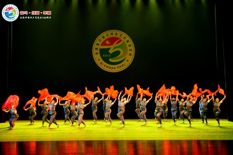 比赛中,舞蹈团的同学们用昂扬向上的精神风貌、神形兼备的绝美舞姿,将红军战士充满顽强不屈精神的革命英雄故事完美的呈现在舞台之上,感染了现场所有评委观众的心。最终,凭借舞蹈团精湛的表演、动情地表达,荣获了全国第六届大学生艺术展演一等奖及优秀创作奖。