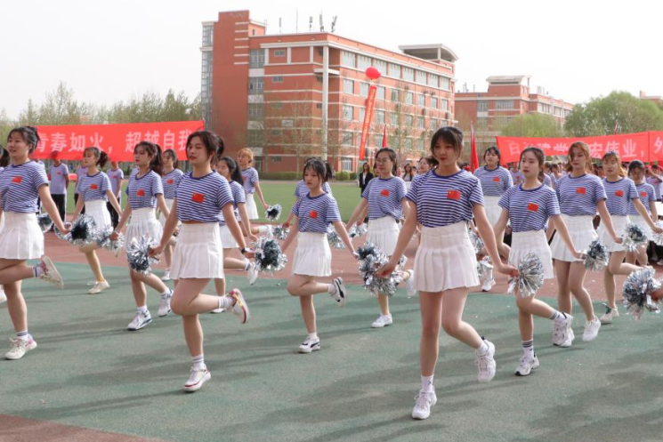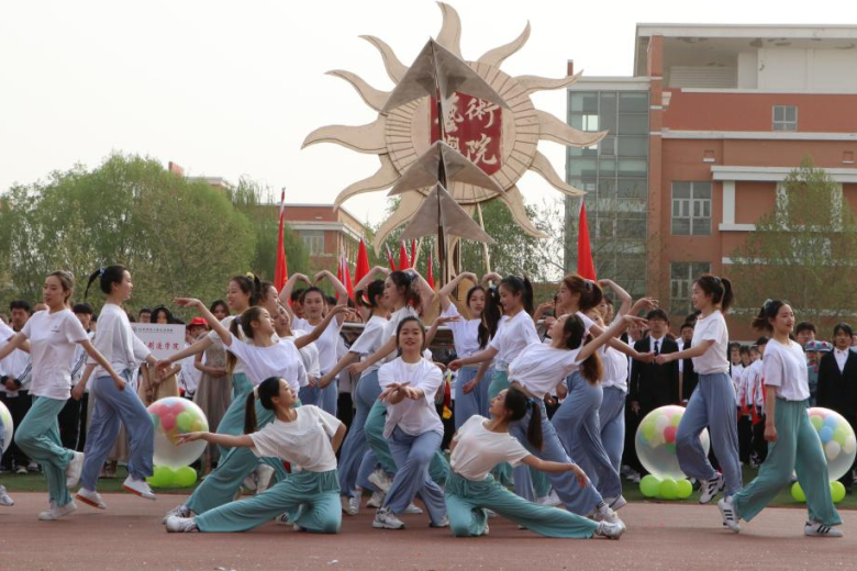艺术学院方阵融汇了音乐、舞蹈、设计等多种元素,同学们跟着欢快的节拍走过主席台,活力四射、英气十足。