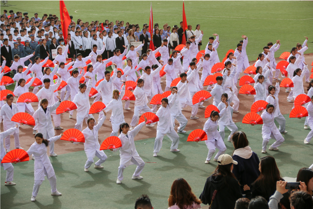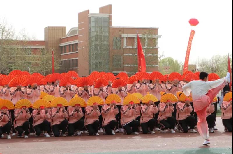 大健康学院方阵用太极功夫扇将舞蹈的轻柔美感与武术的阳刚威仪展现的淋漓精致。刚柔并济的表演向我们展示了中国功夫的魅力。