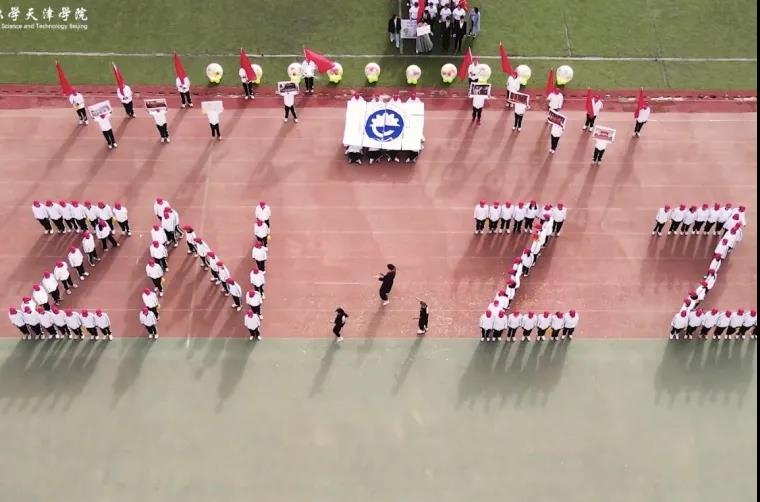 材料科学与工程学院方阵用他们专属的材料元素为党庆生,同学们手中的五星红旗随风飘扬,激起了青年人心中的热血。