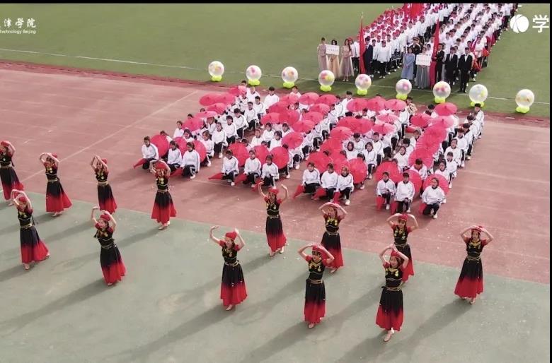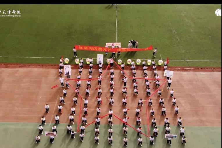 城市建设学院方阵以描绘闪闪红星的方式贯穿前后,讲述建党百年的伟大进程。用集体舞的形式跳出中华民族坚韧不催的抗疫精神和百折不挠的中国精神。