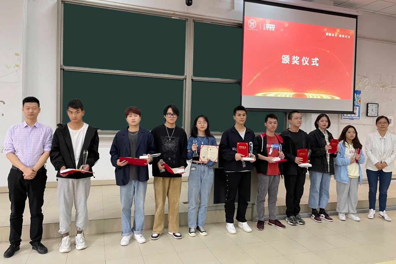 教务处处长舒敬荣为一等奖获奖者颁发证书以及奖品。