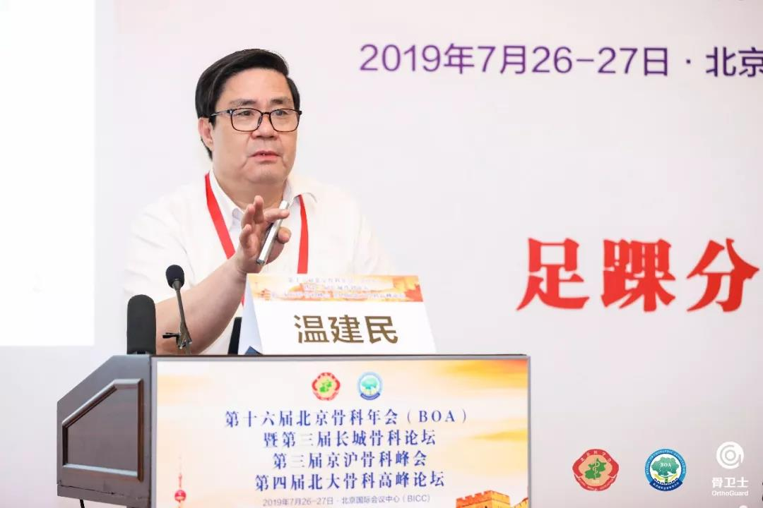 2019年7月26日至27日,温建民教授作为学术委员会委员,受邀参加了在北京国际会议中心召开的“第十六届北京骨科年会暨第三届长城骨科论坛,第三届京沪骨科峰会、第四届北大骨科高峰论坛”,并在会上作了主题为“基于中医筋骨理论的踇外翻及跖痛症整料体系的构建和推广”的演讲。