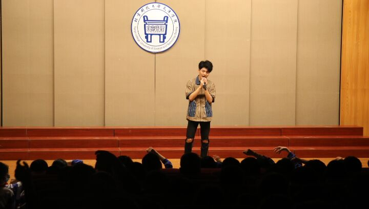 晚会过程中,乐起舞动,优美高亢的开场曲《花开新时代》调起了全场气氛,两位青春洋溢的主持人用他们饱含热情的语调为晚会讲述了一段精彩的开场白,晚会异彩纷呈,魅力四射,通过艺术学院学生的精彩呈现,使得现场群情激昂,掌声雷动。