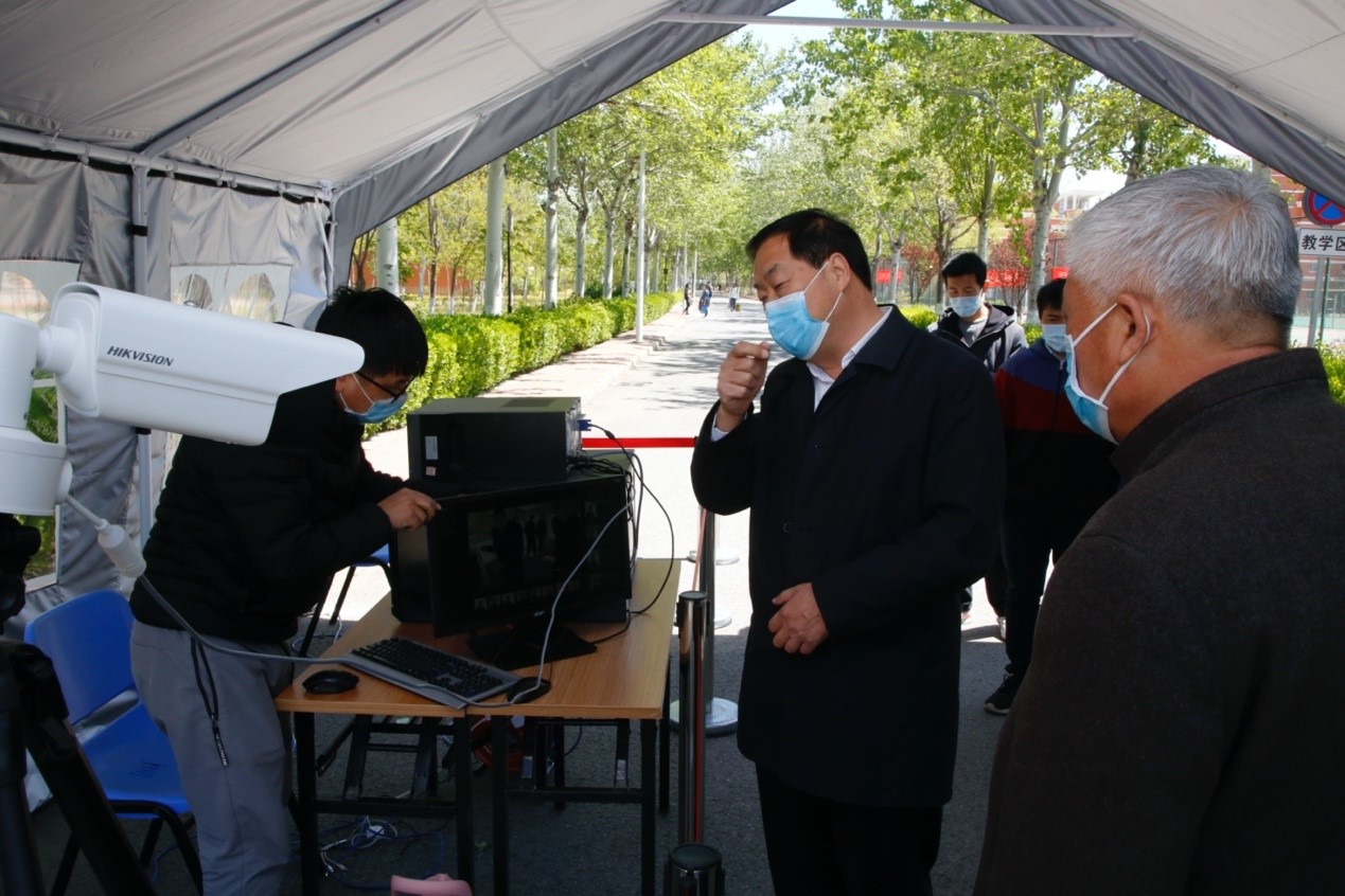 4月23日上午,市教委学生处杨明,市卫生健康委王健鹏,市市场监管委李卿,市教委学生处何飞一行到老王论坛 进行复课开学条件核验,宝坻区教育局党委书记、局长周振亮,副局长刘淑玲陪同检查和指导工作。学院院长王斌,副院长张永锋、叶振楠,财务总监王俊敏,相关部门负责同志陪同检查。