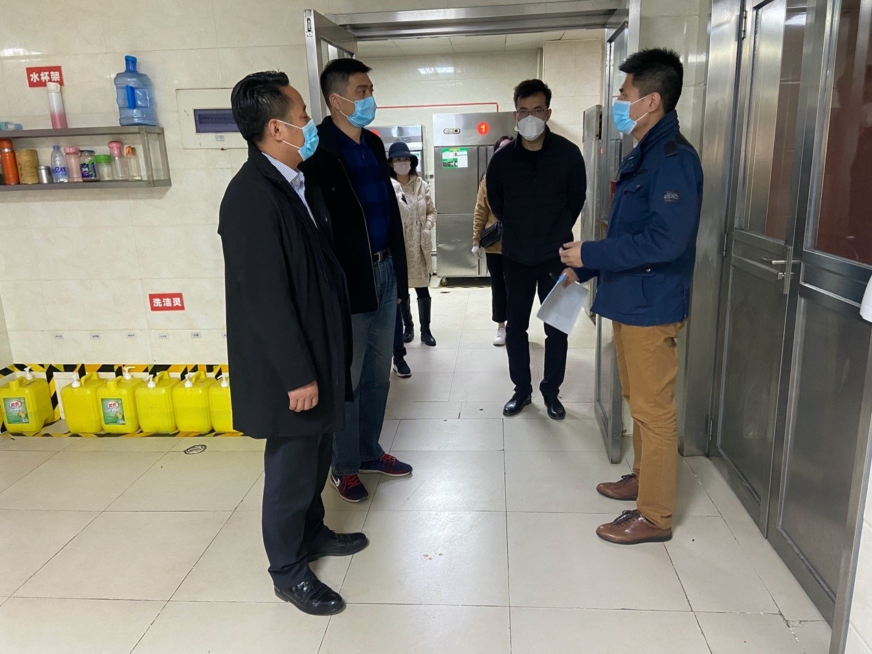 市教委检查组分四组对照《天津市高等学校2020年春季学期复课开学条件核验细则》逐一核查落实,实地查看学院临时隔离观察点、医疗保障和卫生达标以及教室、食堂、宿舍等重点区域疫情防控措施落实情况,观看宿舍学生发热应急处置和食堂送餐、分餐等模拟演练,并对进一步做好复课开学疫情防控工作提出具体要求。