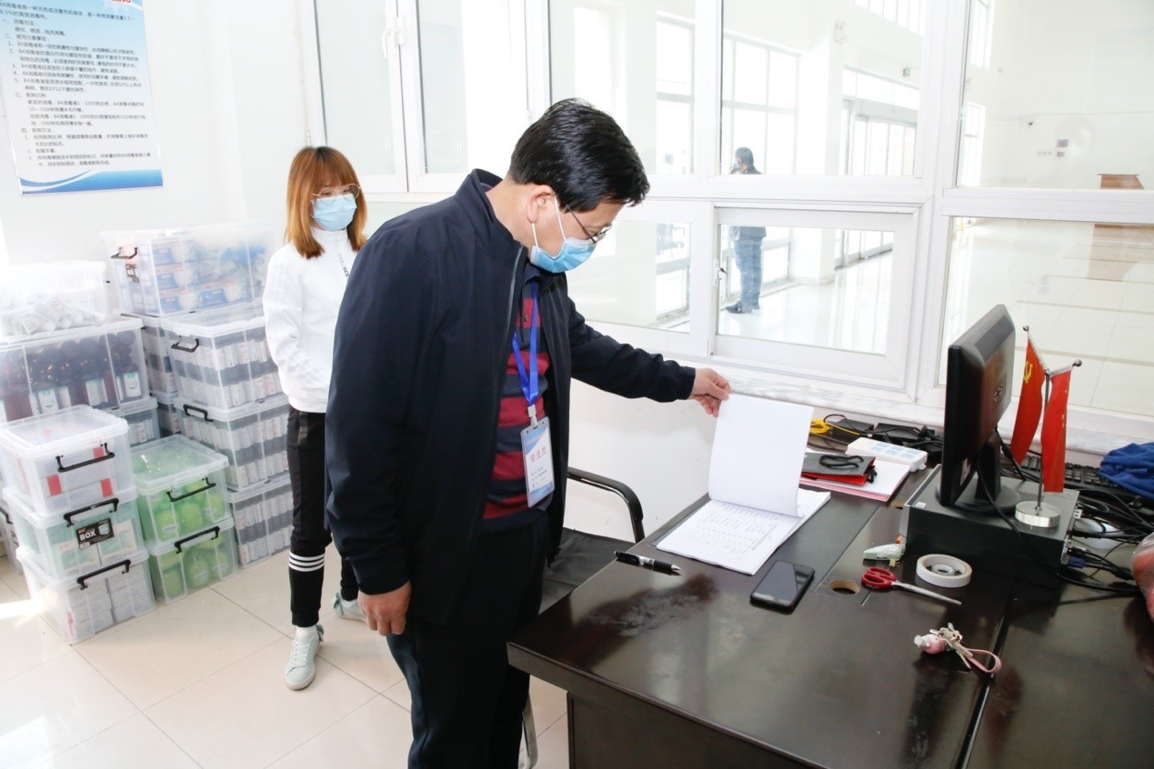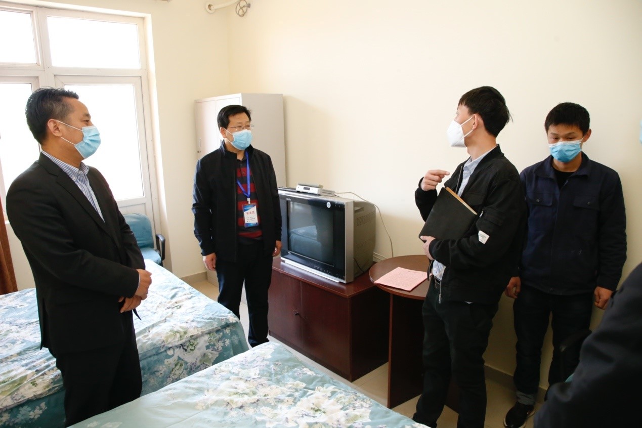王斌院长向督查组汇报了学院复课开学准备情况,介绍学院在疫情防护、安全保障、校园卫生管理等方面所做工作。督查组前往防控物资储备库房、临时隔离观察点食堂等重点区域实地考察,并对进一步做好复课开学疫情防控工作提出具体要求。