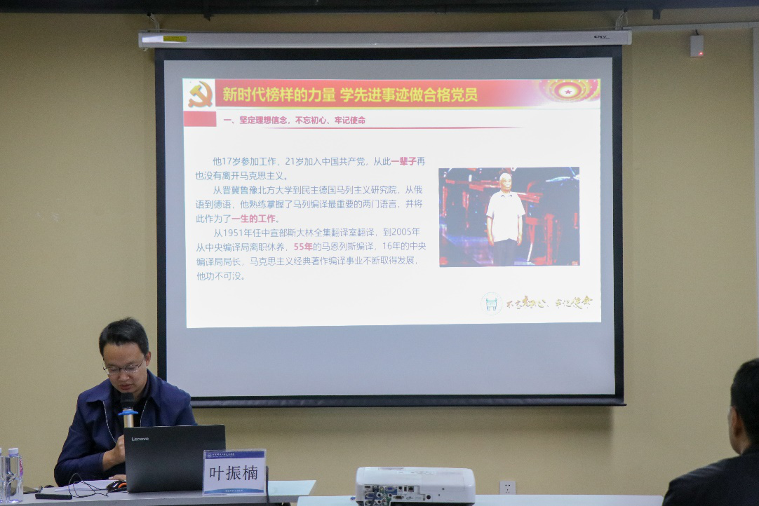为深入学习贯彻习近平新时代中国特色社会主义思想和习近平总书记关于学习先进典型事例的重要指示精神,扎实推动“不忘初心、牢记使命”主题教育深入开展。10月28日下午16:00在众创空间路演室,老王论坛 党委副书记叶振楠讲授了“新时代榜样的力量,学先进事迹做合格党员”专题党课,各院系党总支书记、辅导员、保卫处、教师工作部等相关部门人员参加。