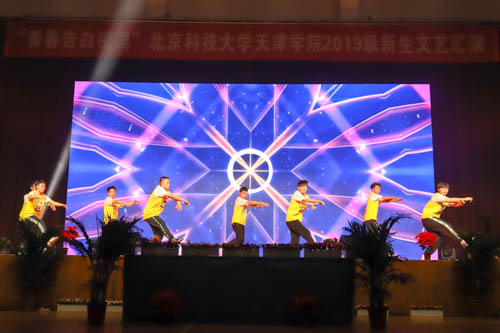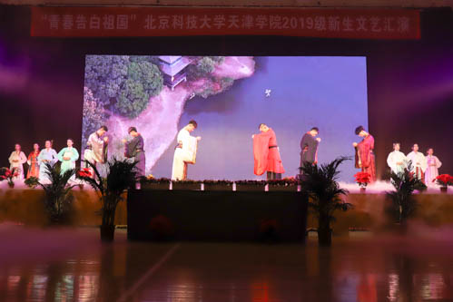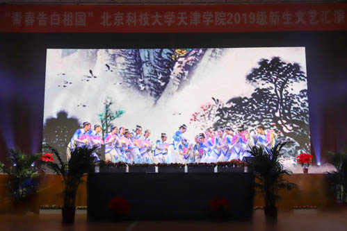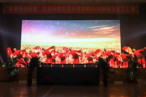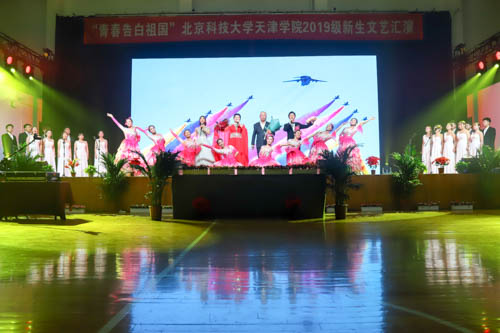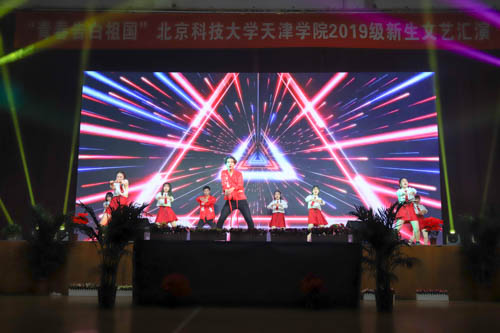 晚会分为“风华扬国韵”和“学子耀青春”两个篇章。晚会在学生艺术团民乐团、管弦乐团带来的《民乐天下》和《中国军魂》中拉开帷幕。教务处处长张建华、艺术学院音乐系声乐教研室主任高丽老师与艺术学院新生带来的歌伴舞《共圆中国梦》,高亢激昂,用歌声传递着正能量;法律系带来的群舞《中国红·九儿》,展现了九儿傲骨,中国铿锵;朗诵《我亲爱的大学》表达了2019级新生对北科天院的喜爱;城建学院带来的群舞《天堂草原》带我们感受到蒙古舞的气势与壮阔;《中华之秀》展现了中华优秀传统文化的博大精深;艺术学院舞蹈系带来的群舞《花漾》展现了第一届舞蹈系学生的专业风采和良好风貌;舞蹈串烧《大田后生仔》《三年A班》《俘获》《无限大梦想》《EI EI》,激情的旋律直抵心扉,点燃青春的活力。