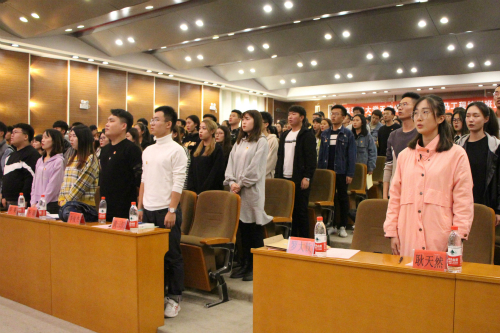 随后,团委书记殷实为本期团校开学典礼致开幕词。他向全体学员提出了三点希望。希望学员们能够珍惜团校学习的机会,努力成长为具有强烈的组织归属感、勇于实践的有志青年;希望同学们珍惜团校学员的荣誉,学会对自己的人生和未来负责;最后希望每一位学员都能够做到胸中有目标,脚下有行动,时刻鞭策自己,经受住各方面的考验,圆满认真完成团校培训,为自己的大学生活谱写一曲成功的乐章。