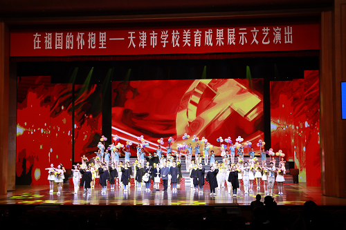 10月23日晚7:30,由天津市委教育工委、天津市教委举办的天津市学校美育成果展示文艺演出——“在祖国的怀抱里”在天津大礼堂盛大开幕。此次演出展现了歌颂祖国的壮丽华美与青少年的的爱国之心,提升了学生的美育概念与美育情操。