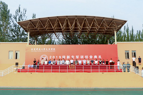 9月8日上午,2019级新生军训结业典礼在西操场隆重举行。早7时30分,2019级3100余名新生整齐列队,伴随朝阳开始汇报表演。分列式方队伴随着嘹亮的口号声率先从主席台前昂首走过,拉开了军训汇报展示的序幕。硝烟弥漫中,同学们默契配合,紧张有序的完成战场救护演练;口号铿锵,身姿矫健,同学们整齐划一进行匕首操演练;彩旗飞舞,令行禁止,同学们用海军旗语表白北科天院;声震九霄,拳脚刚劲,同学们的军体拳表演气势恢宏;歌声掌声口号声声声入耳,站相走相坐相英姿飒爽,三声三相表演中同学们摆出“祖国”“70”字样,祝福中华人民共和国成立70周年。随后队伍集结,全体同学用嘹亮的口号喊出“富强、民主、文明、和谐,自由、平等、公正、法治,爱国、敬业、诚信、友善”并齐声“祝祖国七十周岁生日快乐”将现场气氛推向高潮。