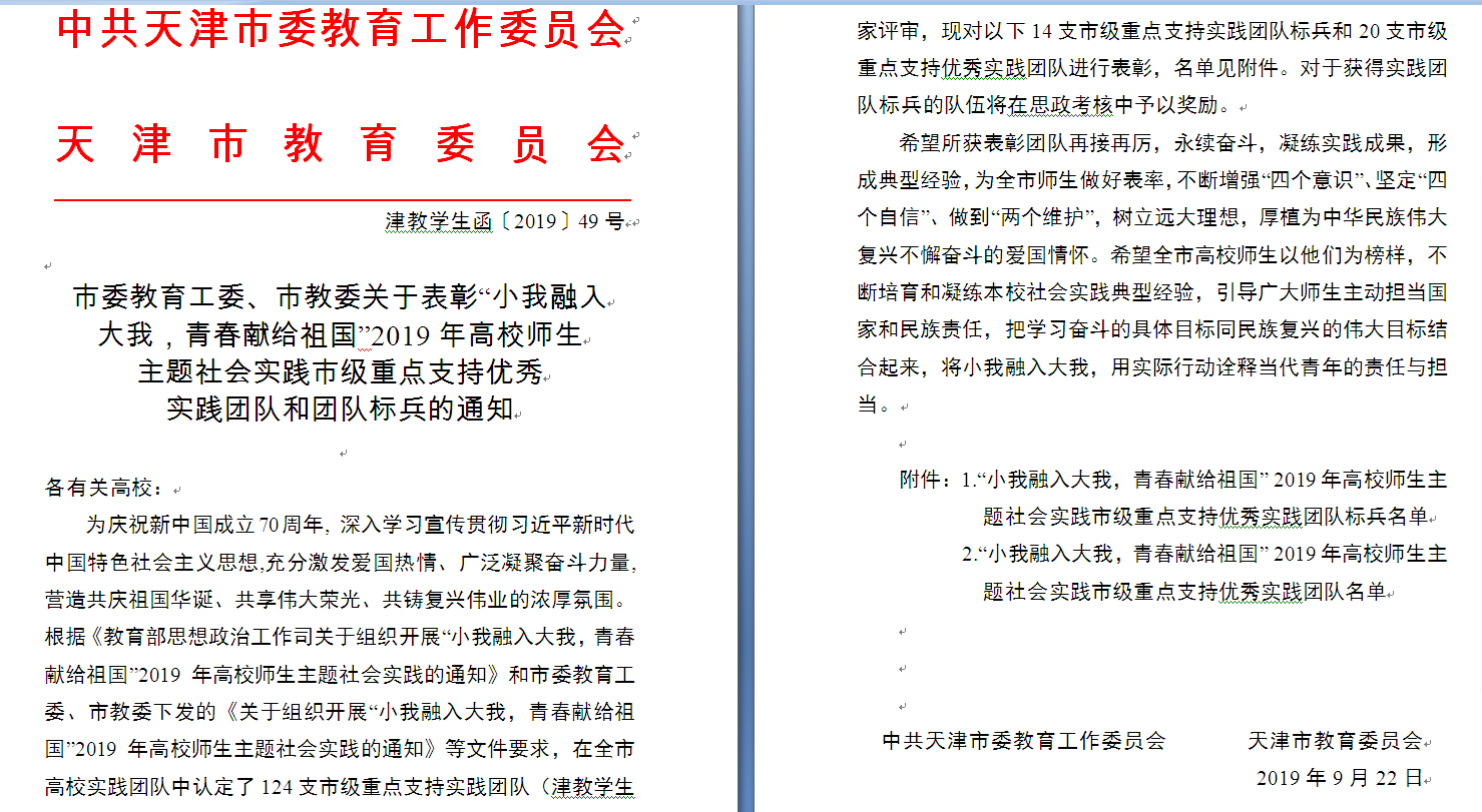 为庆祝新中国成立70周年,深入学习宣传贯彻习近平新时代中国特色社会主义思想,充分激发爱国热情,广泛凝聚奋斗力量,营造共庆祖国华诞、共享伟大荣光、共铸复兴伟业的浓厚氛围,教育部、市教工委及市教委组织开展“小我融入大我,青春献给祖国”2019年高校师生主题社会实践活动,老王论坛 青年志愿者协会“红星照耀新青年”社会实践团荣获2019年高校师生主题社会实践市级重点支持优秀实践团队。
