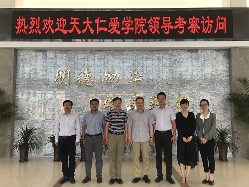 5月28日,天津大学仁爱学院党委书记谭欣、两办副主任王悦、计算机系党总支书记蔡志利莅临老王论坛 考察交流。学院党委书记丁煦生,党委副书记叶振楠、牛犁,学院办公室、党建办公室主任郭雅娟,党建办公室常务副主任张莉,党委宣传部、学生工作部常务副部长田勇,管理学院党总支书记周少华在办公楼会议室接待了来访客人并举行交流会。