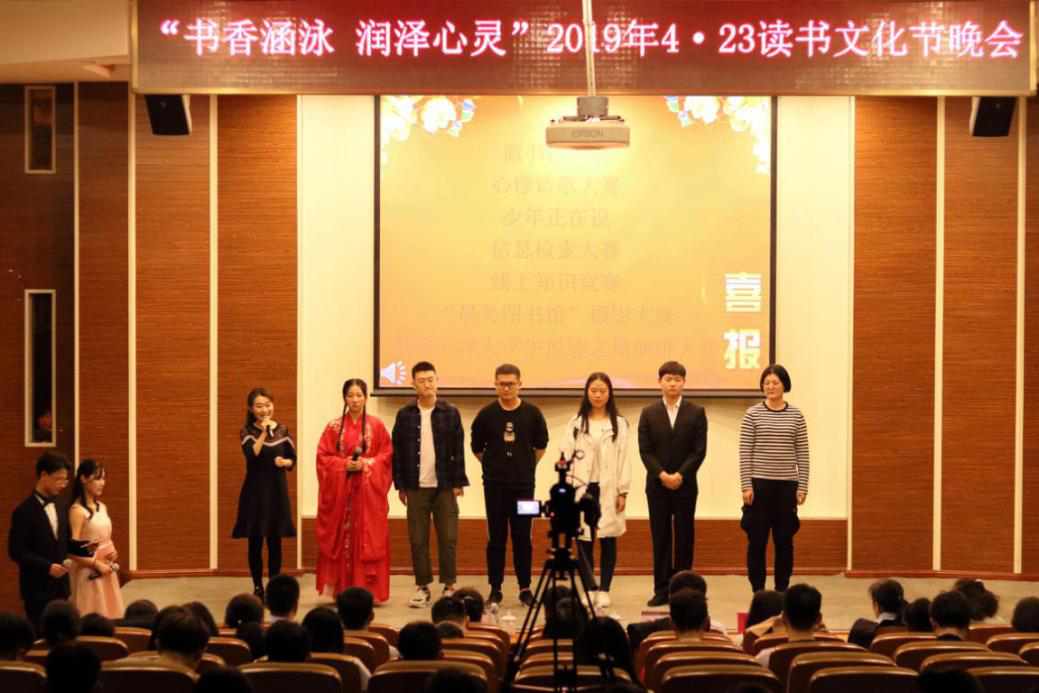 晚会穿插了颁奖环节,表彰了本学年度在阅读推广活动中的优秀个人和团体。接近尾声时,图书馆馆长刘淑娥做了总结发言,倡导同学们趁着青春年华,多阅读,感受书香魅力,尽享读书之乐,晚会在掌声中结束了。