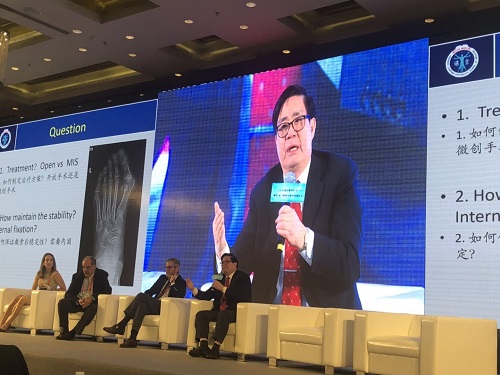27日,温建民教授同Mariano de Prado Serrano教授,Antonio Viladot Voegeli教授,韩国足踝外科协会前任主席Yong Wook Park教授,Weill-Cornell医疗学校A. Holly Johnson教授一起进行了《微创治疗拇外翻畸形的临床探讨》专题的学术授课。