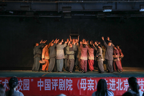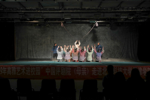 本剧独特的叙事方式和叙事结构、新颖的导演手法、充满象征性和仪式感的舞台呈现,已经超越了传统戏曲甚至许多当代戏曲的创作模式。著名剧作家锦云编剧,著名导演张曼君执导。剧中母亲角色由国家一级演员、评剧白派传人王平饰演。剧中所写母亲原型,就是为了抗击日寇侵华,把丈夫和4个孩子送上前线并全部牺牲的英雄母亲邓玉芬。剧中伟大的“母亲”离我们特别近,她是京郊密云人,她与中国亿万母亲一样平凡、朴实、仁义、坚强,热爱和平。这样的 “母亲”令人心潮澎湃,热血涌流。演出结束,到场师生都深深被这位“母亲”打动,轻声啜泣。