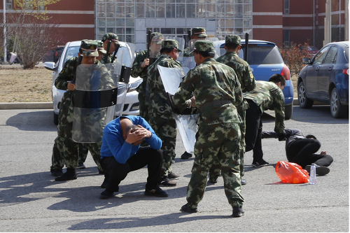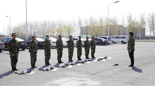 为贯彻落实习近平总书记总体国家安全观,进一步推动校园安全稳定工作开展,锤炼安保队伍应急处突快速反应能力,深化党务工作与业务工作有机结合,发挥党支部战斗堡垒作用。按照上级相关部门《关于进一步压实防范恐怖袭击重点目标工作责任实施方案》相关工作要求,3月中旬至4月初,机关第八党支部组织策划,由保卫处对全体安保人员进行为期两周反恐防暴理论知识培训和实操演练。4月2日上午,反恐防暴演练汇报展示活动在12教行政楼前进行,保卫处处长何国钧,副处长董朋山,学生处常务副处长田勇,保卫处副处长周少华及机关第八党支部全体党员参加了此次活动
